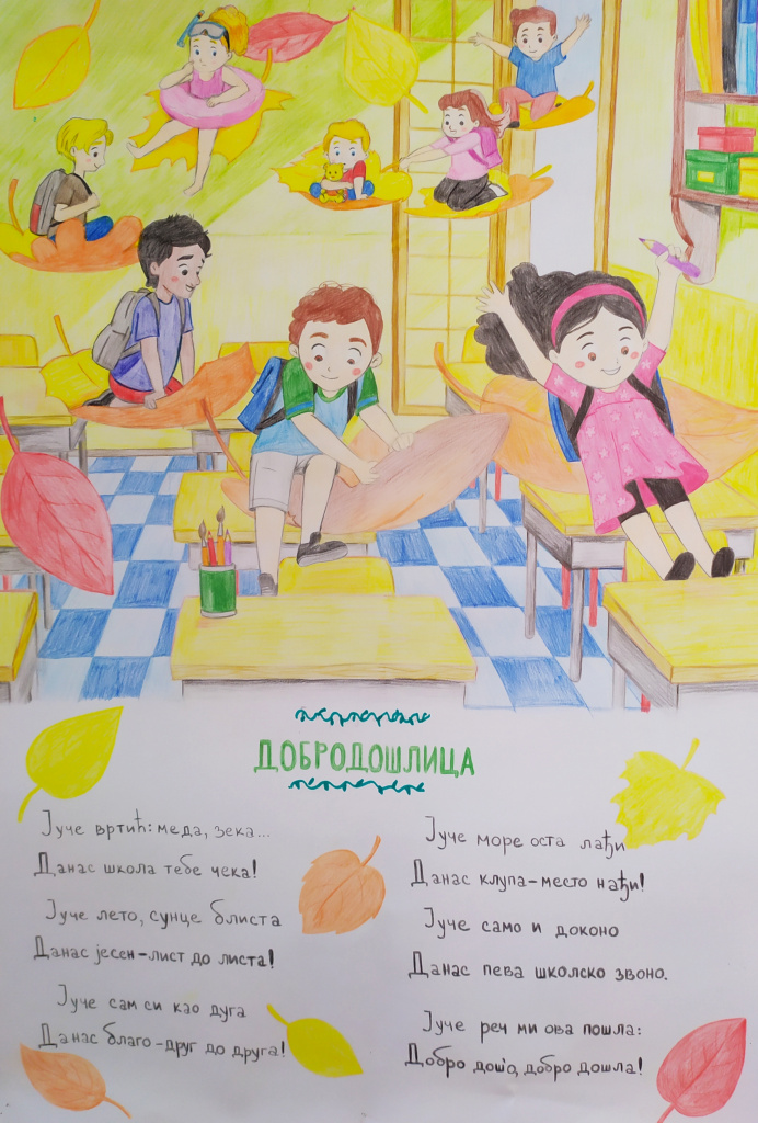 Пано за добродошлицу ђака првака урадиле учитељица Марија Анђелић и наставница ликовне културе Милена Нешић. |